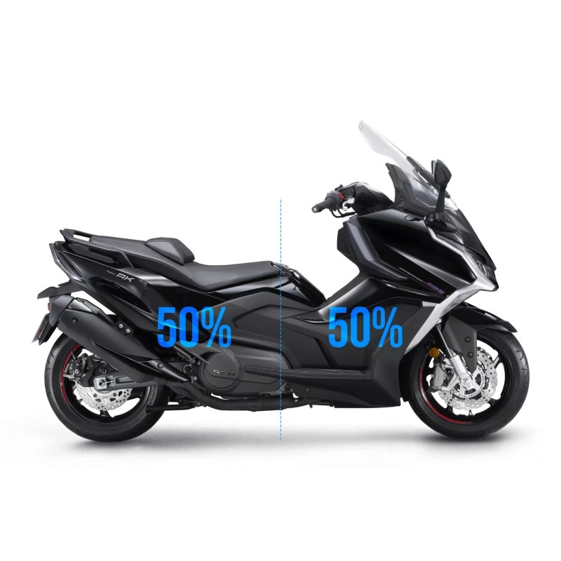 Sein 550 cm3 Zweizylinderblock bietet hohe Leistung und Drehmoment für ein reibungsloses und angenehmes Fahren in der Stadt wie auf der Autobahn. Mit seinem neuen, mit Kohlefaser verstärkten PTM-Getriebe (Power Transmission Matrix) minimiert der AK PREMIUM Reibungsgeräusche und bietet eine bessere Kraftübertragung.
