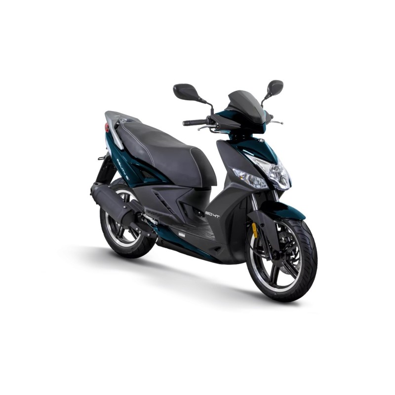 Der AGILITY 50 16+ bietet viele Serienausstattungen wie eine 12V-Buchse, eine Rauchsportblase, Beifahrergriffe usw. für angenehme Solo- oder Duo-Fahrten.
