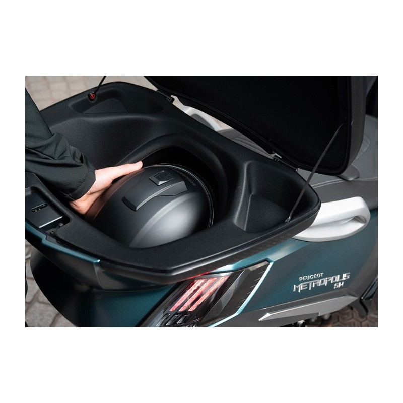 Noch nie war es so komfortabel, die Stadt zu regieren. Sein integrierter 54L Oberkasten ermöglicht die Unterstützung von zwei Integralhelmen und lässt sich auf Knopfdruck öffnen, ohne dass ein zusätzlicher Schlüssel erforderlich ist. Dieser neue Kofferraum kommuniziert mit dem geräumigen Kofferraum unter dem Sattel, was dem Peugeot Metropolis SW einen noch nie dagewesenen Stauraum verleiht.Und das ist noch nicht alles: Peugeot Metropolis SW passt sich seinem Fahrer an und bietet ihm dank seiner verstellbaren Gasdämpfer außergewöhnlichen Komfort.