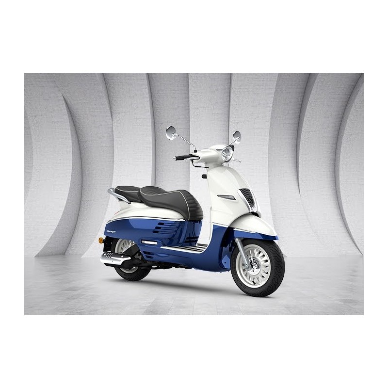 2024 DJANGO CLASSIC 125 DER NEO-RÉTRO-ROLLER VON PEUGEOT MOTOCYCLES Django Classic 125 ccm, in seinem Retro-Geist vom mythischen Peugeot S55-Modell geerbt, verkörpert klassischen Charme und französische Eleganz. Sein effizienter Motor und sein Design machen es zu einem unverzichtbaren Verbündeten der urbanen Mobilität. Homologation : L3e-A1 Nom : EasyMotion 125 Type : Monocylindre 4 Temps Cylindrée (cc) : 125cc Alimentation : Injection électronique Alésage x Course (mm x mm) : 52,4 x 57,8 Refroidissement : Air Puissance Max (kW) : 7.8 Puissance Max (cv) : 10.608 Puissance Max (tr/min) : Couple 8000 Max (Nm) : 9.3 Couple Max (trmax/min) : 6500 Vmax (km/h) : 90 Consommation (L) : 2.3 Emission CO2 (g/km) : 52 : 2 soupapes Lubrification : A carter humideémarrage Embrayage : Automatique centrifuge D : Elektrische Transmission : Par courroie maximale Autonomie (km) : 380 Benzintank (L): 8,5 Länge (mm) : 1925 Breite (mm) : 710 Breite im Rückspiegel (mm) : 810 Höhe (mm) : 1190 Radierung (mm) : 1350 Sattelhöhe (mm) : 770 Leergewicht (kg) : 129 Gewicht in Marschordnung (kg) : 135 Radius de Briquage (mm) : 3880 Fahrgestelltyp : Chassis Acier Tubulaire Suspension vorne : Fourche télescopique hydraulique Ø 32 mm Débattement Suspension vorne (mm) : 85 Suspension arrière : Combiné ressort ressort hydraulique Débattement arrière suspension hinten (mm) : 88 Art der Bremse : ABS Rad vorne Bremse Typ vorne : Scheibe Durchmesser Bremse vorne (mm) : 200 Typ Bremse hinten : Scheibe Durchmesser Bremse hinten (mm) : 190 Typen Felgen : Aluminium Reifen vorne (mm/%-in) : 120/70-12 Reifen hinten (mm/%-in) : 120/70-12