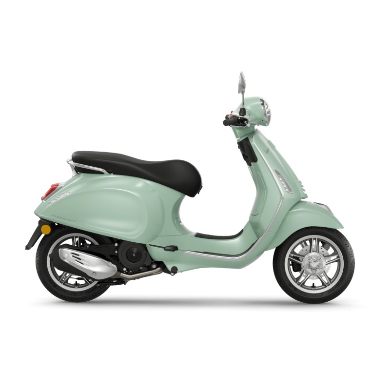 Die Essenz einer Ikone Moderne Oberflächen und zeitloser Stil verbinden sich. Mit ihrem klaren Design und verchromten Akzenten bringt die Vespa Primavera dem reichen Erbe der Vespa einen zeitgenössischen Touch und eine lebendige Farbpalette. PRIMAVERA 125 – TECHNISCHE DATEN MOTOR Einzylinder i-get 4-Zakt, 3 Ventile ZYLINDER 124 cm3 LÄSTEN x RENNEN 52 mm x 58.6 mm MAXIMALE LEISTUNG MIT DER VILBREQUIN 8.1 kW - 11 PS - bei 7,750 U/min MAX PAAR 10.7 Nm bei 6,250 U/min VERBRAUCH 40 km/l CO2-EMISSIONEN 60 g/km LEBENSMITTEL Elektronische Injektion KÜHLUNG Zwangsluft Elektrischer STARTER TRANSMISSION Automatischer CVT-Dermator mit Drehmoment-Servator KUPPLUNG Automatische Trockenzentrifuge mit Dämpferpuffern RAHMEN Stahlschale mit geschweißten strukturellen Verstärkungen SUSPENSION VORHER Einarm mit Schraubenfeder, hydraulischer Dämpfer SUSPENSION HINTEN Schraubenfeder mit einstellbarer Vorladung in 4 Positionen und Dämpfer Hydraulik FRONTBREMSE Edelstahlscheibe Ø 200 mm mit hydraulischer Steuerung BREMSE HINTEN Trommel Ø 140 mm mit mechanischer Steuerung ABS-Einkanal-ABS-SYSTEM am Vorderrad VORDERRAD Tubeless 110/70 - 12” Hinterrad Tubeless 120/70 - 12” LÄNGE/ BREITE/ EINFÜHLE 1.870 / 750 / 1.340 mm SETTELHÖHE 785 mm TANK 8 Liter HOMOLOGATION Euro 5+ KRIT'AIR-KLASSIFIKATION Klasse 1